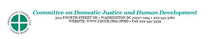 ******Committee on Domestic Justice and Human Development ******3211 FOURTH STREET NE • WASHINGTON DC 20017-1194 • 202-541-3160 WEBSITE: WWW.USCCB.ORG/JPHD • FAX 202-541-3339