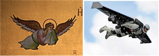 They call it the Ancient Astronaut Theory. Erik von Daniken popularized it.I saw that show. They basically use pictures like the two below to draw the conclusion that angels are really aliens.